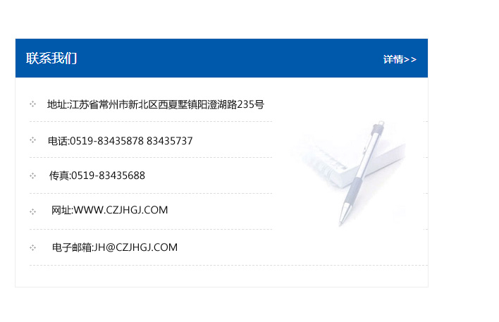 地址:常州市新北區友邦商務大廈1幢16、17層  電話:0519-85101652  傳真:0519-85112595  郵編:213022  網址:www.cz-jiayue_cn.enjoyala.com  郵箱:xiajifengaa@163.com